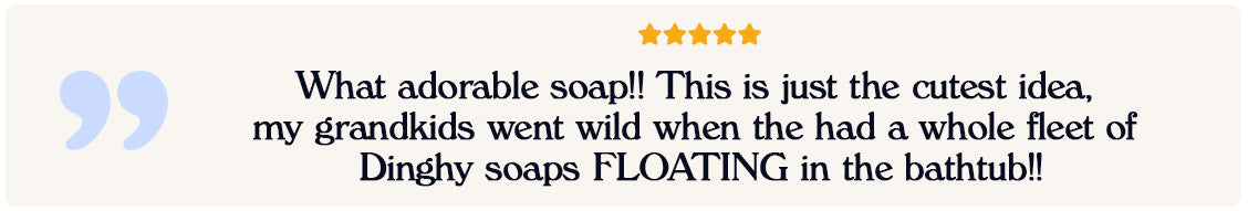 The floating soap that keeps bath time afloat. Tired of slippery soap slipping away - or bath time turning into a battle? Dinghy Soap is here to help.